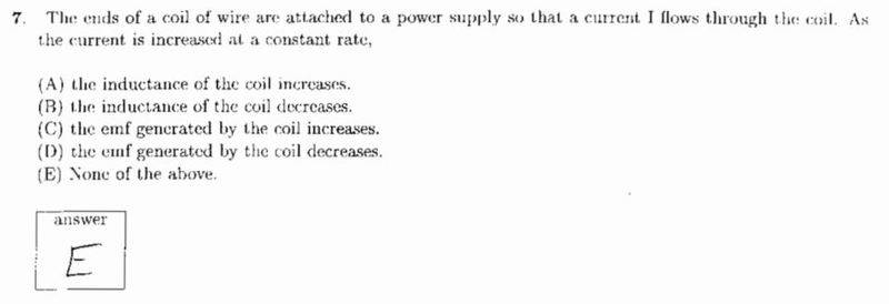 The discussion revolves around the behavior of a coil of wire as the current flowing through it is increased, specifically focusing on inductance and electromotive force (emf). The subject area includes concepts from electromagnetism and circuit theory.
