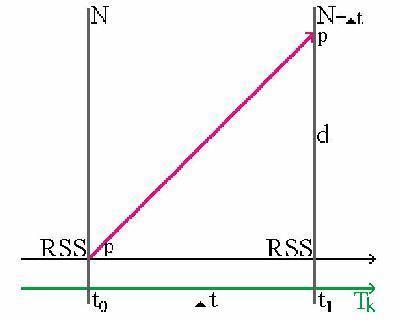 tm' in the train frame, the observer