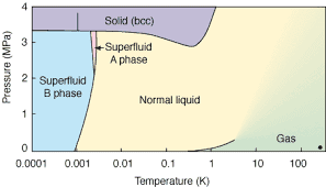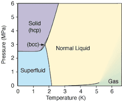 - There is a mention of temperature requirements for helium to transition into a superfluid state, with distinctions made between helium-4 and helium-3 isotopes.