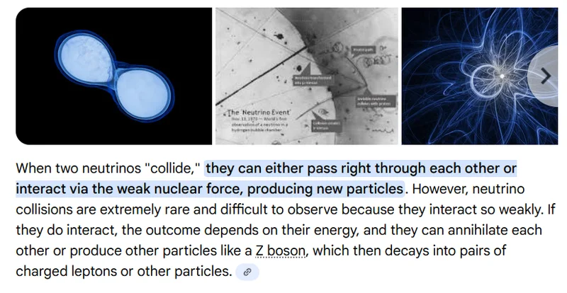 - One participant questions how neutrinos can be detected and speculates on the likelihood and consequences of neutrino collisions, suggesting that they may not release energy due to their lack of charge.