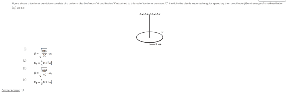 - ω=√(C/I); here C is the torsional constant