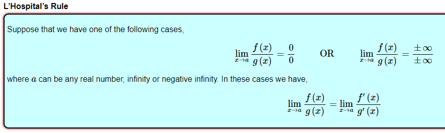 I tried another method with L'Hopital rule and came with 0/0 form.