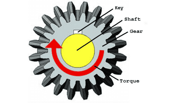 - It is noted that for effective torque transmission, the key must be properly seated, with half of its depth in the shaft and half in the gear.