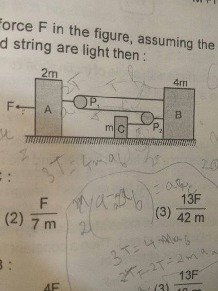 - a_b (is this right? I feel like this should be right but idk why)Acceleration of middle string also must be the same
