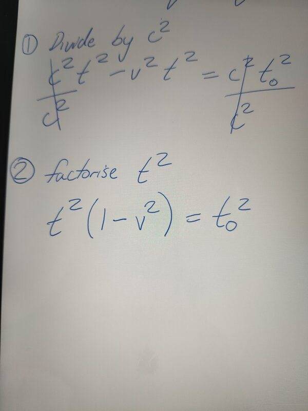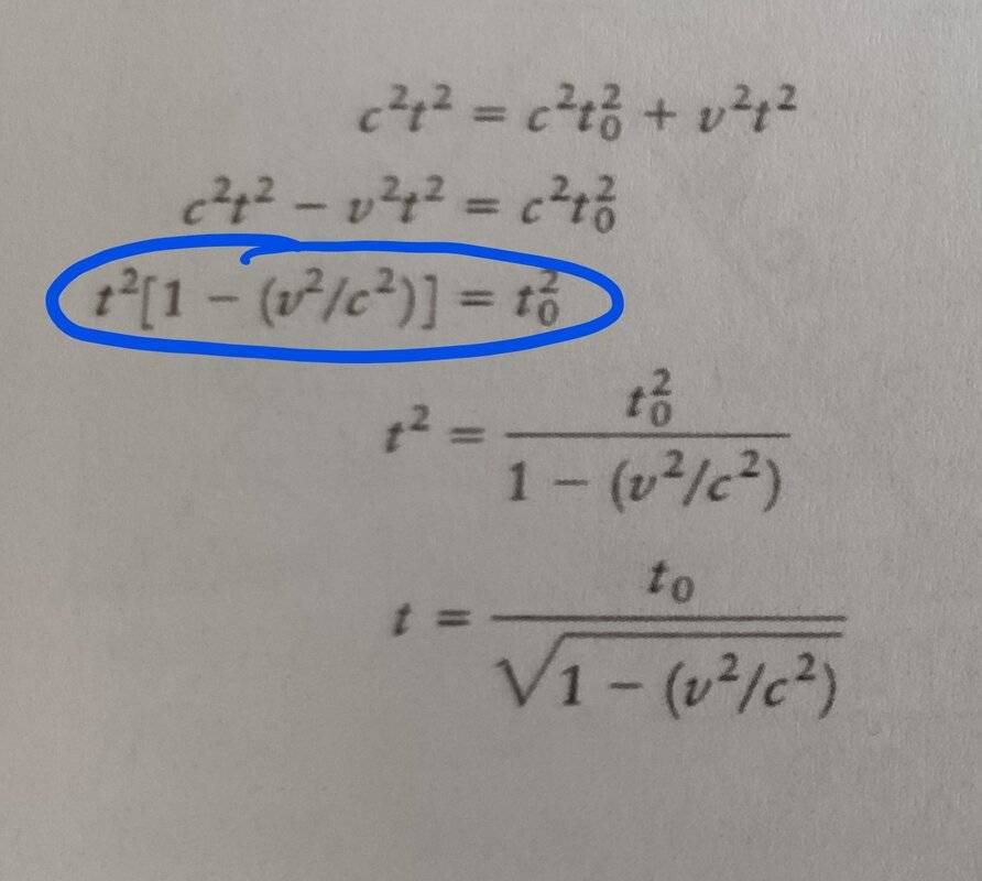 I am trying to derive the time dilation formula following the image attached. However I am unsure of the algebra being used toget from the 2nd line of working to the 3rd line. Can someone please tell me what the name of the algebra concept being used is and some resources I can use to understand it.