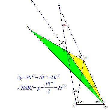 $ \angle NMC=25^o=\angle A+(65^o - 55^o)$
