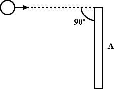 - A thin rod of mass M and length L is struck at one end by a ball of clay of mass m, moving with speed v as shown in figure. The ball sticks to the rod. After the collision, the angular momentum of the clay-rod system about A, the midpoint of the rod, is