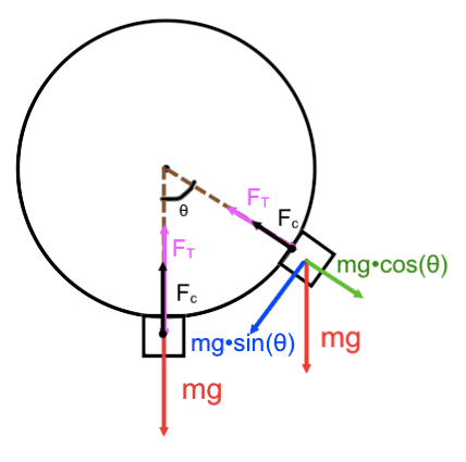b. Fnet/Fc=mv^2/r= Ft - mg cos (theta); Ft=Fc + mg