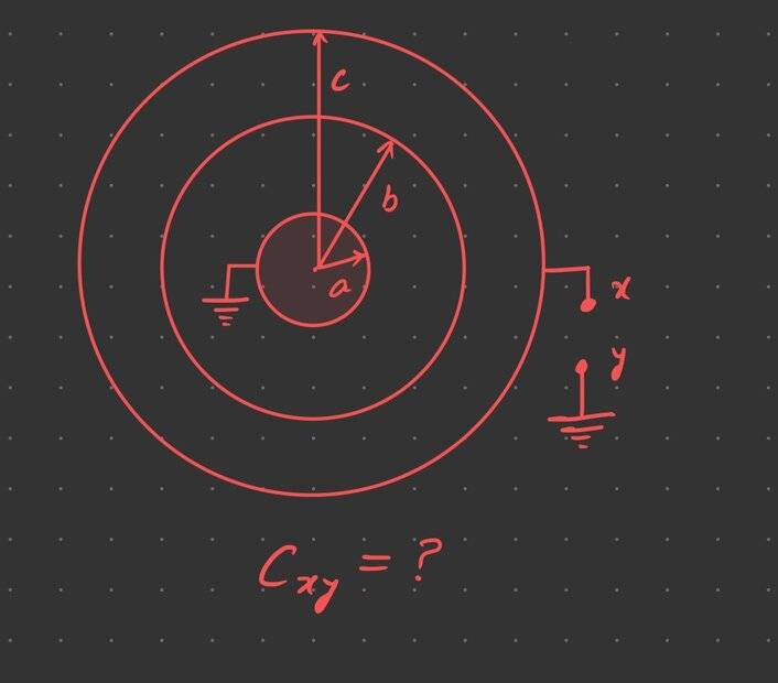 - One participant suggests treating the problem as two capacitors in series, specifically between the shells of radii a and b, and b and c.