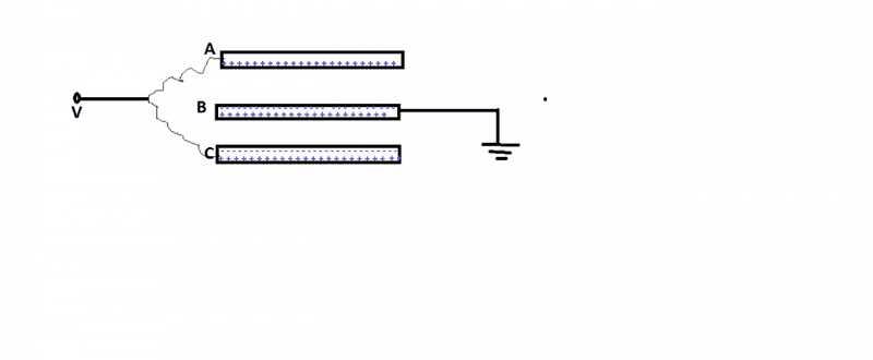 A and C are connected to same potential V and you have shown net +ve charge on A and other plates neutral. Why A? Why not C?
