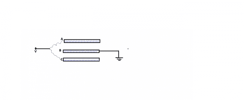 Note that plates A and C are symmetrical and connected to the same potential (V). They should end up with similar charges distributed in the same way