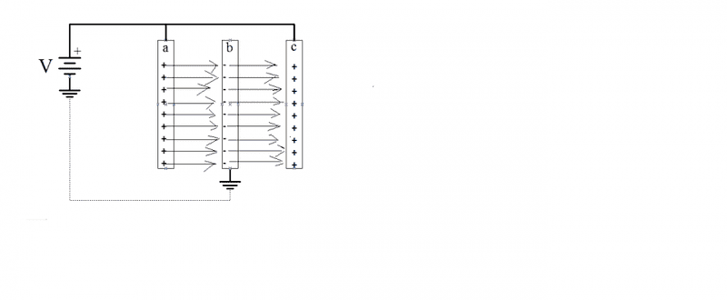 If you are referring to the example where one outer plate is connected to +V and the other to -V, and the middle plate is connected to the ground reference, then the net required charge on the middle plate is zero. Hence no charge moves onto or off of the middle plate.gracy said:Then why no charge transfer occur from Earth as charge are transferred from Earth if there is potential difference between earthed plate and the other plate(s)?