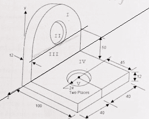 The discussion revolves around calculating the centroid of a composite area, specifically focusing on the centroids of different sections labeled I, II, and V. Participants are examining the accuracy of their calculations and the interpretation of dimensions provided in a diagram.