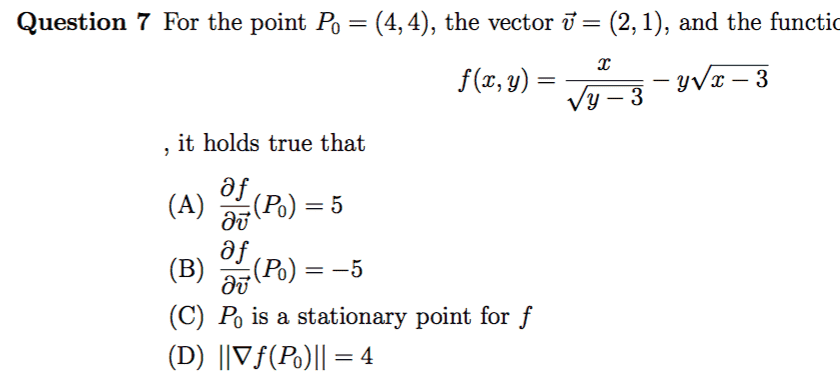 There is mention of differing definitions of directional derivatives in various texts, which may affect the interpretation of the problem. Participants are encouraged to refer to their specific textbook for clarity on the definitions being used.