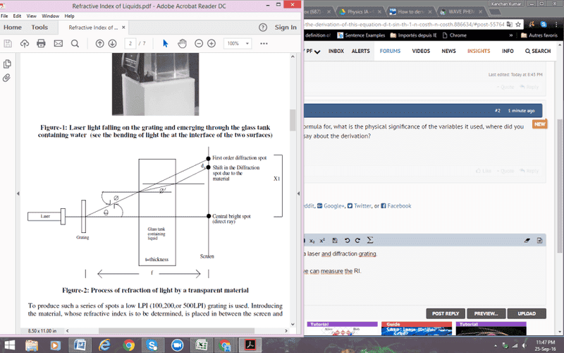 Right! so I am trying to find the Refractive Index of liquids using a laser and diffraction grating.