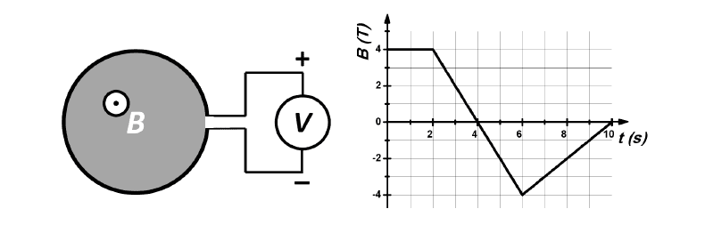 The problem is simple, all I have to do is draw a voltage / time graph. The black ring is a conductor, its inner surface area is 0.01 m^2. The magnetic field points upward, B = 4T.