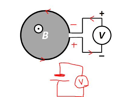 If the current is counter clockwise, the voltage should be positive on the given voltmeter. However, the voltage in the solution is negative. The problem states that the voltage is positive when electrical potential is larger on the "+" side of the voltmeter.