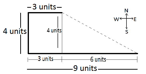 A girl delivering newspapers covers her route by traveling 9.00 blocks west, 4.00 blocks north, and then 3.00 blocks east. (a) What is her resultant displacement? (b) What is the total distance she travels?