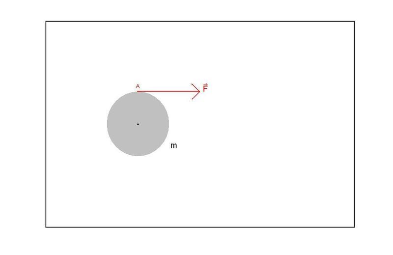 Suppose we have a small cyclic object of mass m, just like in the picture, on a smooth surface. A steady force F is pulling it. The force is always on point A, like in the picture. Describe the object's movement. (for t=0, v=0)