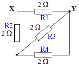 The discussion revolves around determining the effective resistance between two points, X and Y, in a circuit involving multiple resistors. Participants are analyzing the configuration of resistors and their connections, specifically addressing series and parallel arrangements.