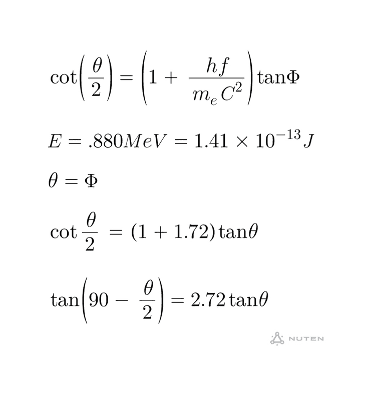 The discussion centers around a problem involving Compton scattering, specifically determining the expression for the scattering angle in terms of a variable \( t \). The scenario involves a photon with an energy of 0.880 MeV scattering off a free electron at rest, with the angles of the scattered photon and electron being equal.