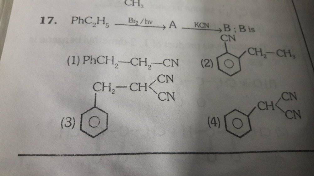 In the second step,Bromine will leave as it's a good leaving group and CN- will come in place of bromine.So,according to me the final product would be 1 cyano 1 phenyl ethane.But the answer was given as d).Help.