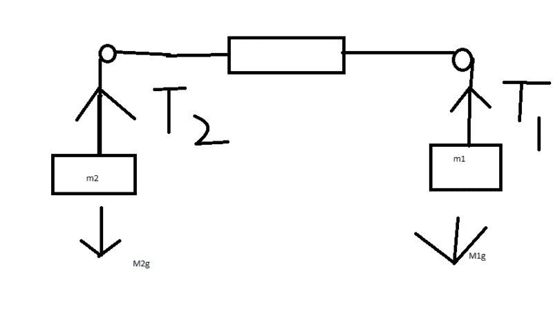 The conversation is active, with participants providing guidance on how to approach the problem by considering the forces and tensions involved. There is a recognition of the need to clarify assumptions and to apply relevant physics equations to the situation.