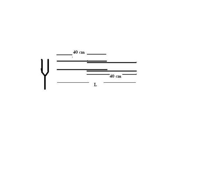A 40 cm long tube has 40 cm long insert that can be pulled in and out. A vibrating tuning fork is held next to the tube. as the insert is slowly pulled out the sound from the tuning fork creates standing waves in the tube when the total length is 42.5 cm, 56.7 cm, and 70.9 cm. what is the frequency of the tuning fork? The air temperature is 20 degree C.