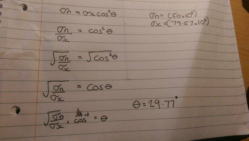 The discussion revolves around finding an angle theta when the cosine of that angle has been squared. Participants are exploring the use of inverse cosine in this context and discussing potential values for theta, specifically around 37 degrees.