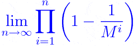 - One participant proposes using logarithmic transformations and the first term of a power series expansion to derive an upper bound, leading to the inequality \(\prod_{i=1}^{\infty} \left(1-\frac{1}{M^i}\right) < e^{\frac{1}{1-M}}\).