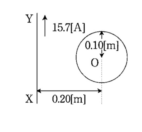 There is lead XY shaped as straight wire. Next to it, circular lead with radius 0.10 m.