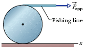 The discussion revolves around determining the magnitude of the acceleration of the center of mass of a uniform solid cylinder subjected to a constant horizontal force. The problem involves concepts from dynamics, specifically relating to torque and the motion of rigid bodies.