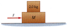 If a horizontal force F is applied to the bottom block, what is the maximum value F can have before the 2.0 kg top block begins to slip?