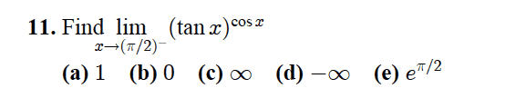 I essentially got (infinity)^0 and just assumed that to be equal to 1 which made sense to me. However, in my textbook and notes, (infinity) to the power of 0 is one type of an indeterminate form. Is there a more appropriate way to sovle this? Perhaps L'Hospital's Rule, although I tried it and get the answer to be 0 instead.