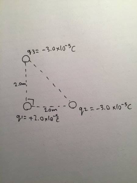 F2 = (9.0x109)(2.0x10-5(3.0x10-5) / (2.0m)2