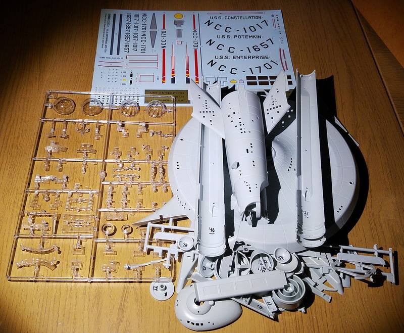 I'm preparing to build a 1:600 scale version of the Star Trek U.S.S. Enterprise (a Revell model, about 48 cm in length assembled). I am thinking of painting it using airbrush, trying to get close to the original series studio model colors, where the hull color actually is a blend of gray and green. I am also considering putting in LEDs at all the windows/viewports if possible, which will be quite a job to do, since there are many of them on the ship :nb):