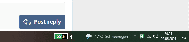 It worked, but now (after some hours) it messed up all the remaining symbols: slight shift to the right so that the time isn't fully visible, explorer symbols in the background, which only go away if hovered. Switching it on and off again helped, for now. It is annoying. We still have snowy rain according to MS. At 20° C air temperature! The next official meteorological station is about one mile from here. Do I expect too much when I think this should guarantee some accuracy? At least that snow thingy shouldn't occur on the first day of summer!