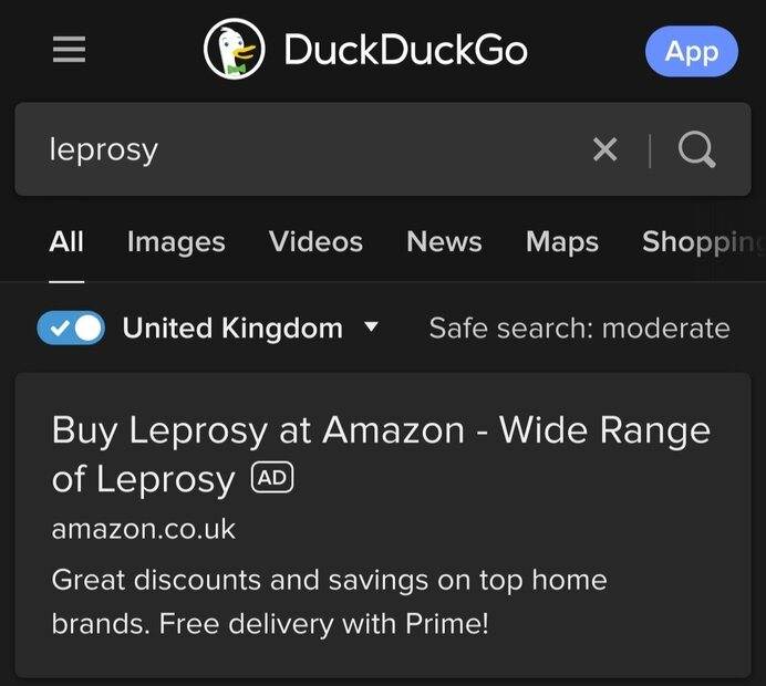 The link turns out to take you to an LP called Leprosy by a band called Death (Amazon's top choice for death leprosy, I gather) and a lot of textbooks about leprosy and its history.