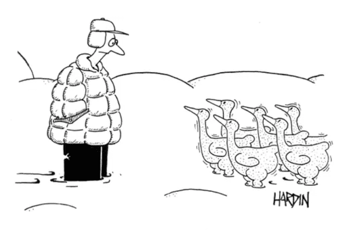It's a guy they are looking at not a duck and no one is moving. Also what is the significance of the snow?