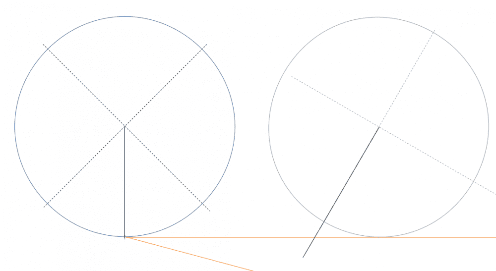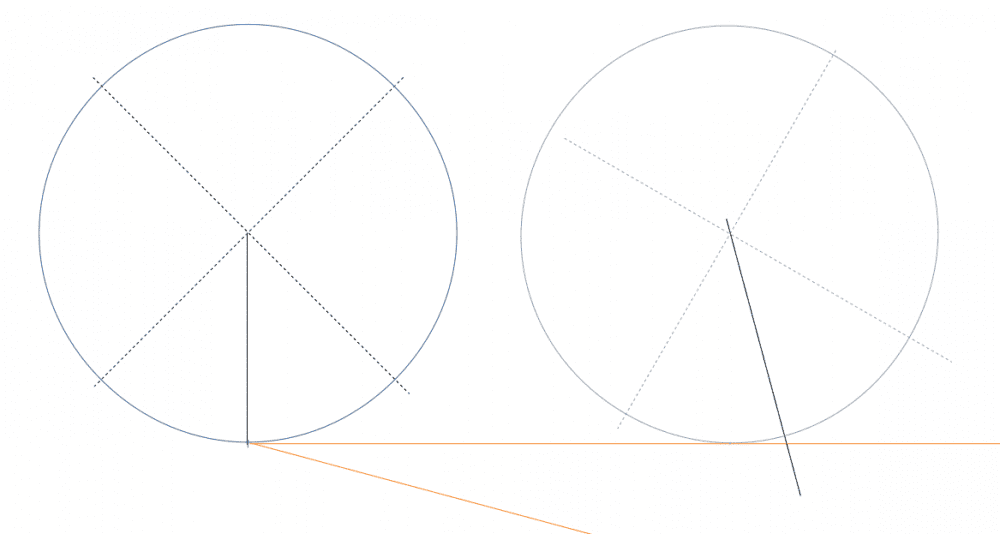 But the initial marks on the two circles are already in contact with the wall. Which amount to rotate ? CW or CCW ?