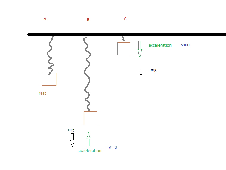 weight block falls a total distance of 1.19 m, its velocity has momentarily dropped to zero, but its acceleration is at maximum. In other words, the