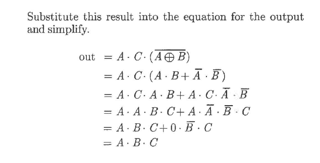 The discussion revolves around the output of a specific logic circuit, with participants analyzing the correctness of a provided solution and exploring the implications of different logic gate configurations. The scope includes technical reasoning and verification of circuit behavior.