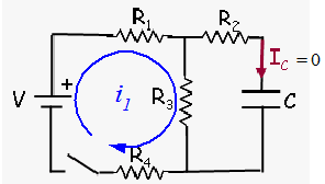 4. V - I1R1 - I2R2 - (Q/C) - I4R4 = 0