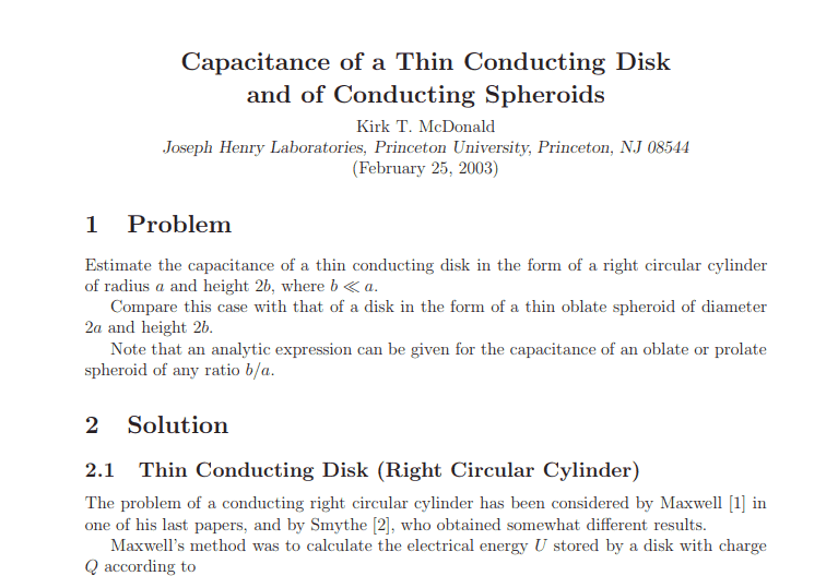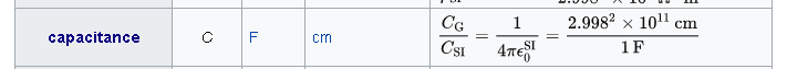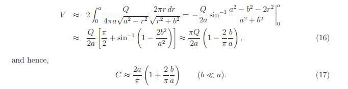 which fortunately simplifies to C = about 2 X Radius / π but I'm still wrestling with Si vs Gaussian units . Should be an epsilon in there someplace.