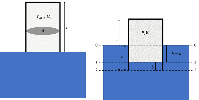 - Some participants express confusion about why hydrostatic pressure is calculated using the height of the air layer (##\Delta x##) rather than the total length of the dipped glass (##L##).
