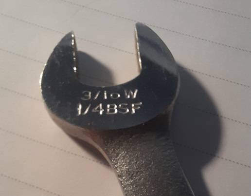 British Standard Whitworth = BSW, standardised threads at 55°. Later, when metallurgy and machining tolerances improved, there was British Standard Fine = BSF, also 55°. The Whitworth spanners were marked for the size of the thread = the diameter of the bolt. That worked OK when Whitworth was the one and only standard.jack action said:BSF? Best Spanner Forever?