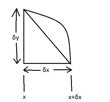 $$(\delta s)^2=(\delta x)^2+(\delta y)^2 \Rightarrow \left (\frac{\delta s}{\delta x}\right )^2=1+\left (\frac{\delta y}{\delta x}\right )^2$$ When $\delta x \rightarrow 0 $ we get $$(s'(x))^2=1+(y'(x))^2 \Rightarrow s'(x)=\sqrt{1+(f'(x))^2} \Rightarrow s(x)=\int_A^x \sqrt{1+(f'(s))^2}ds$$