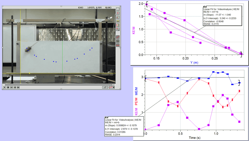 I am in a 100 level physics college course and we are learning about conservation of energy. I am working with a program called Logger Pro. I've attached my data in the pictures. Here is a question that I am very much stuck on.