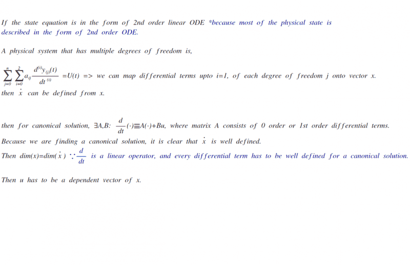 And this gives a conclusion that dim(A)+dim(B)=dim(x). which means, Bu is compensating dimension for the 2nd order differential terms (since x_dot's 2nd order terms are linear superposition of lower differential terms)