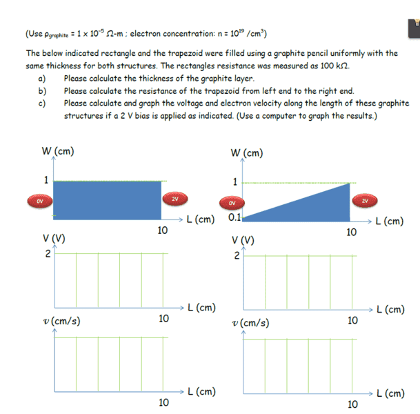 rho, electron concentration - n, the thickness of the graphite layer - h (found in part a), and the velocity - v (I found it), and the voltage across the rectangle is 2 volts.